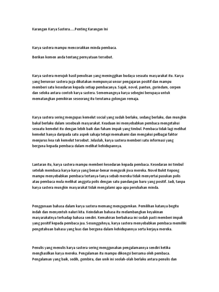 Karangan Cemerlang Aktiviti Karya Sastera Pdf